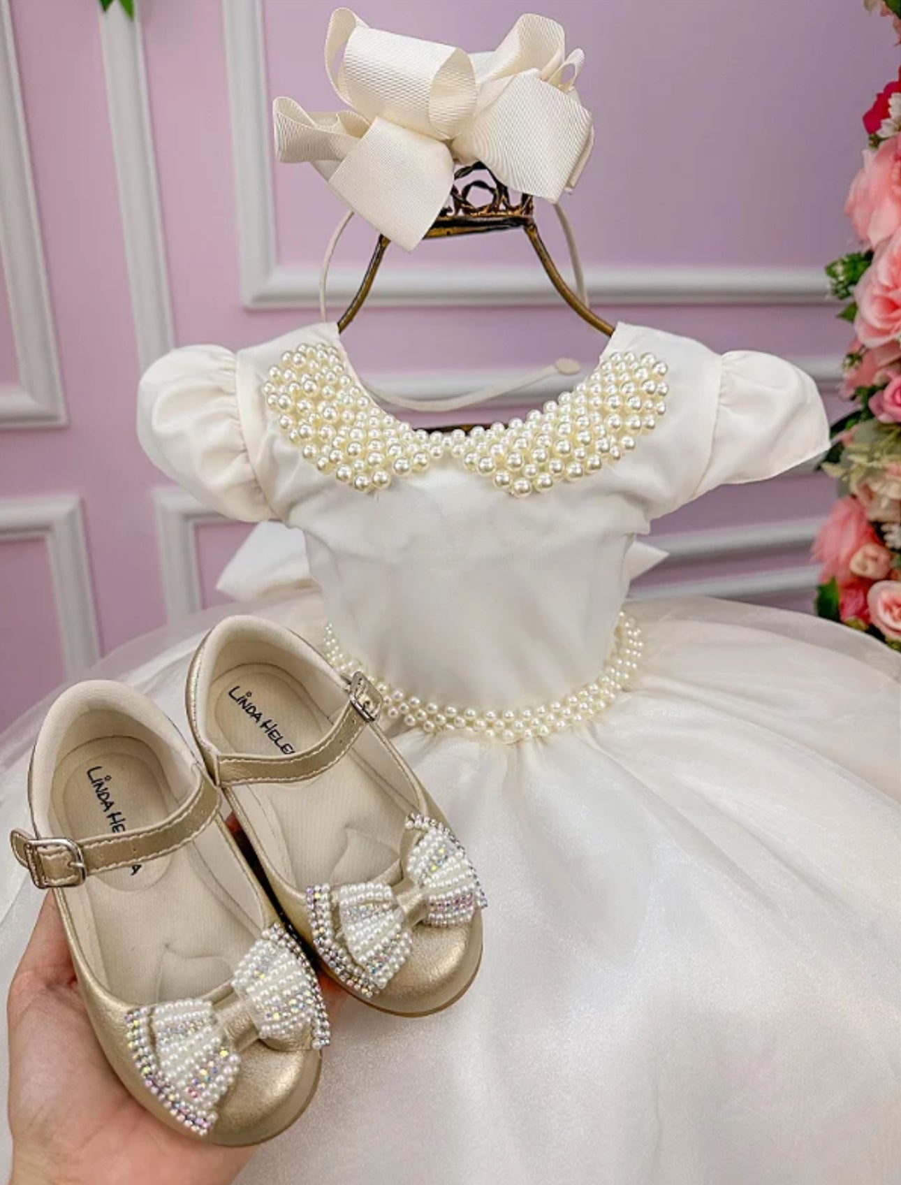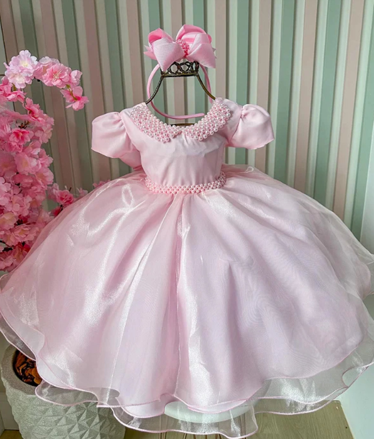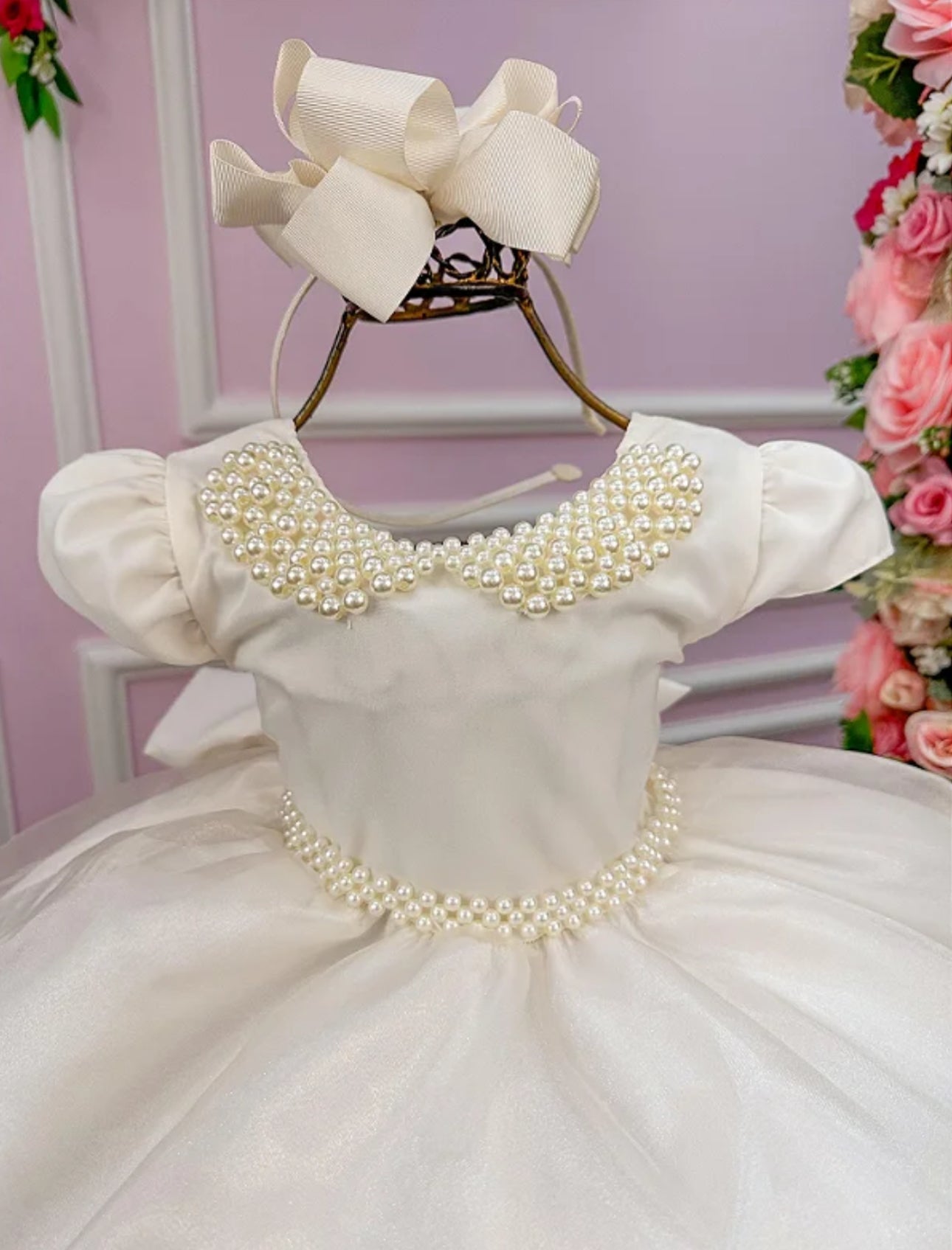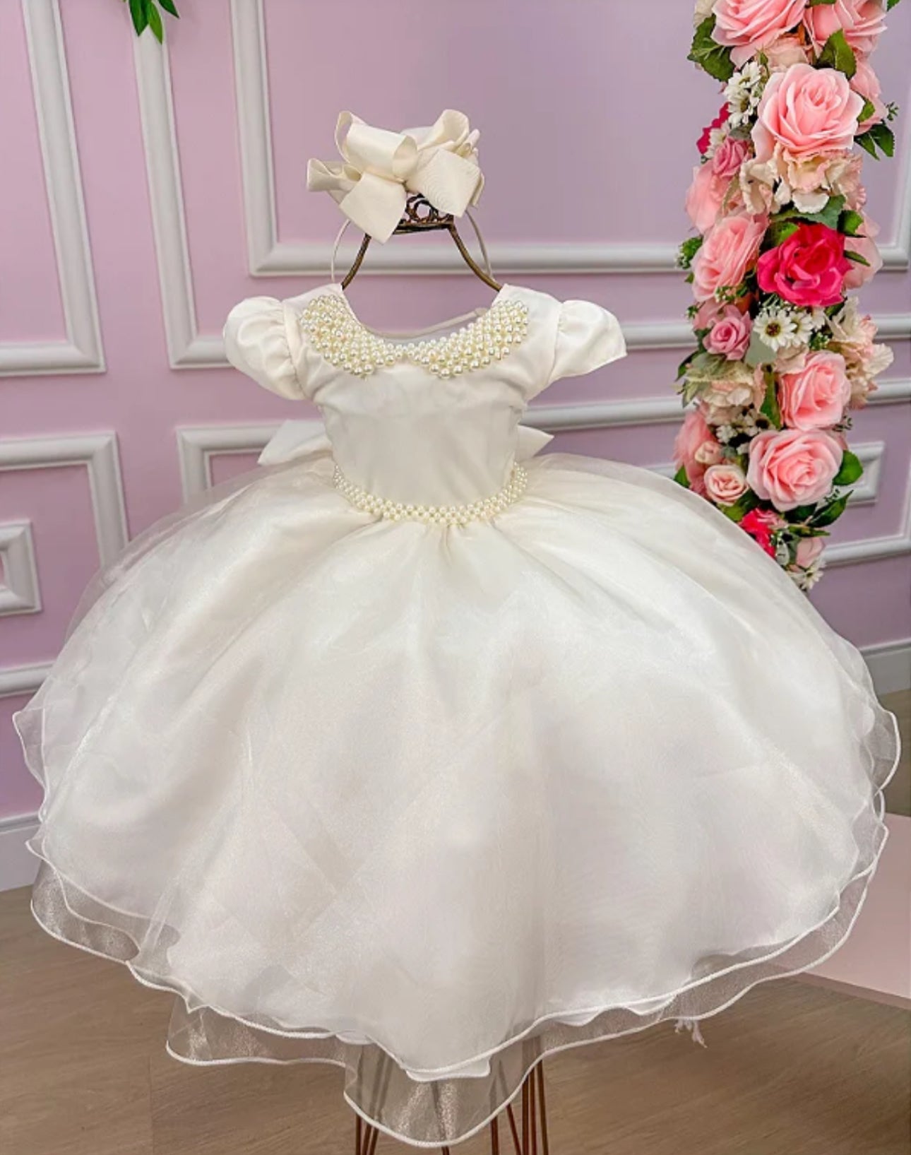 Este lindo Vestido Luxo é perfeito para ocasiões especiais. Feito com bordados manuais de pérolas e elegante laço na cintura, ele é a escolha perfeita para destacar beleza e sofisticação. Com detalhes de qualidade e um toque de luxo, sua criança vai arrasar em qualquer festa.