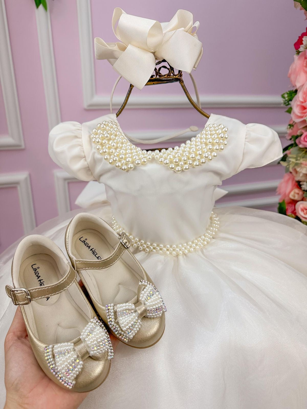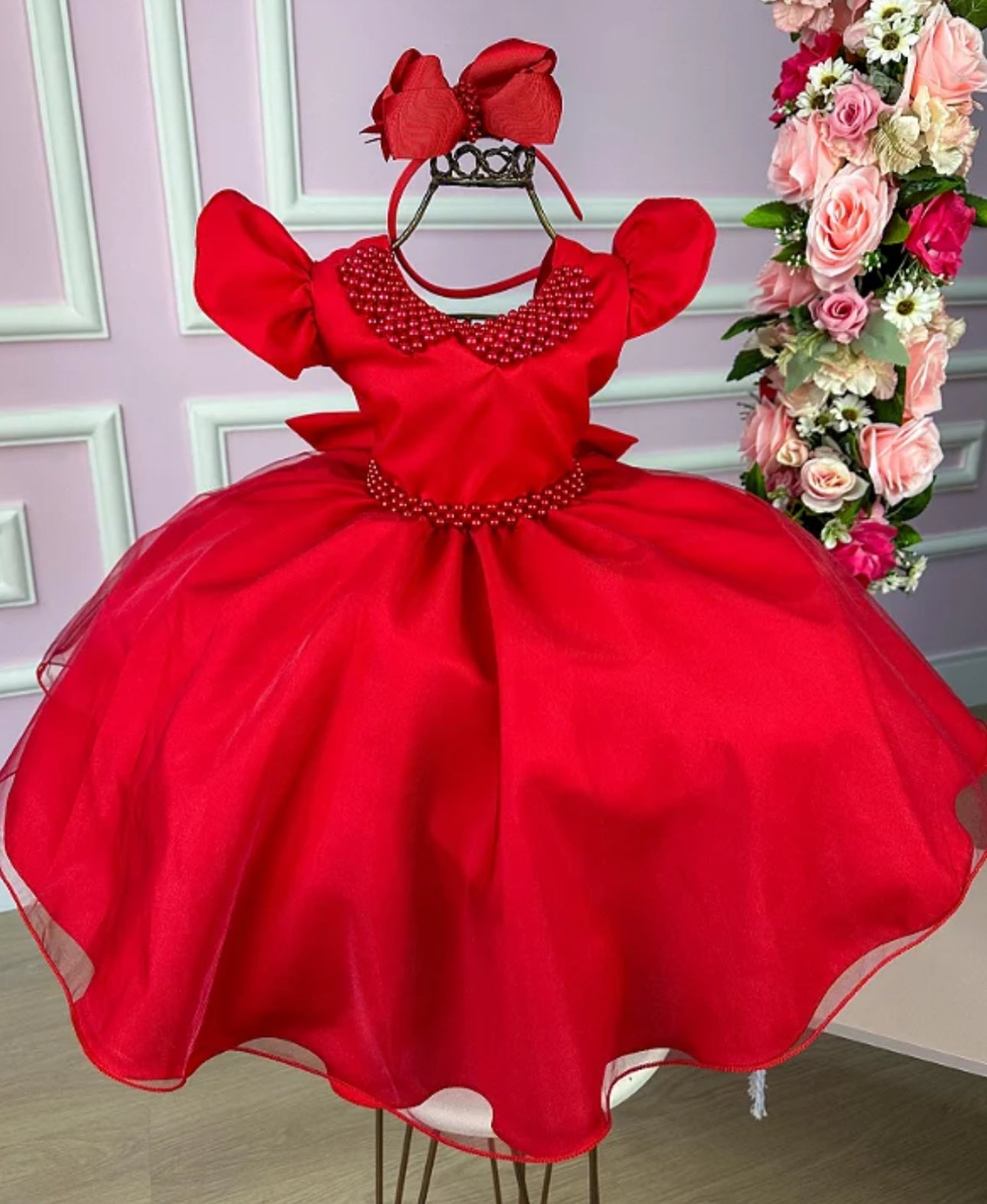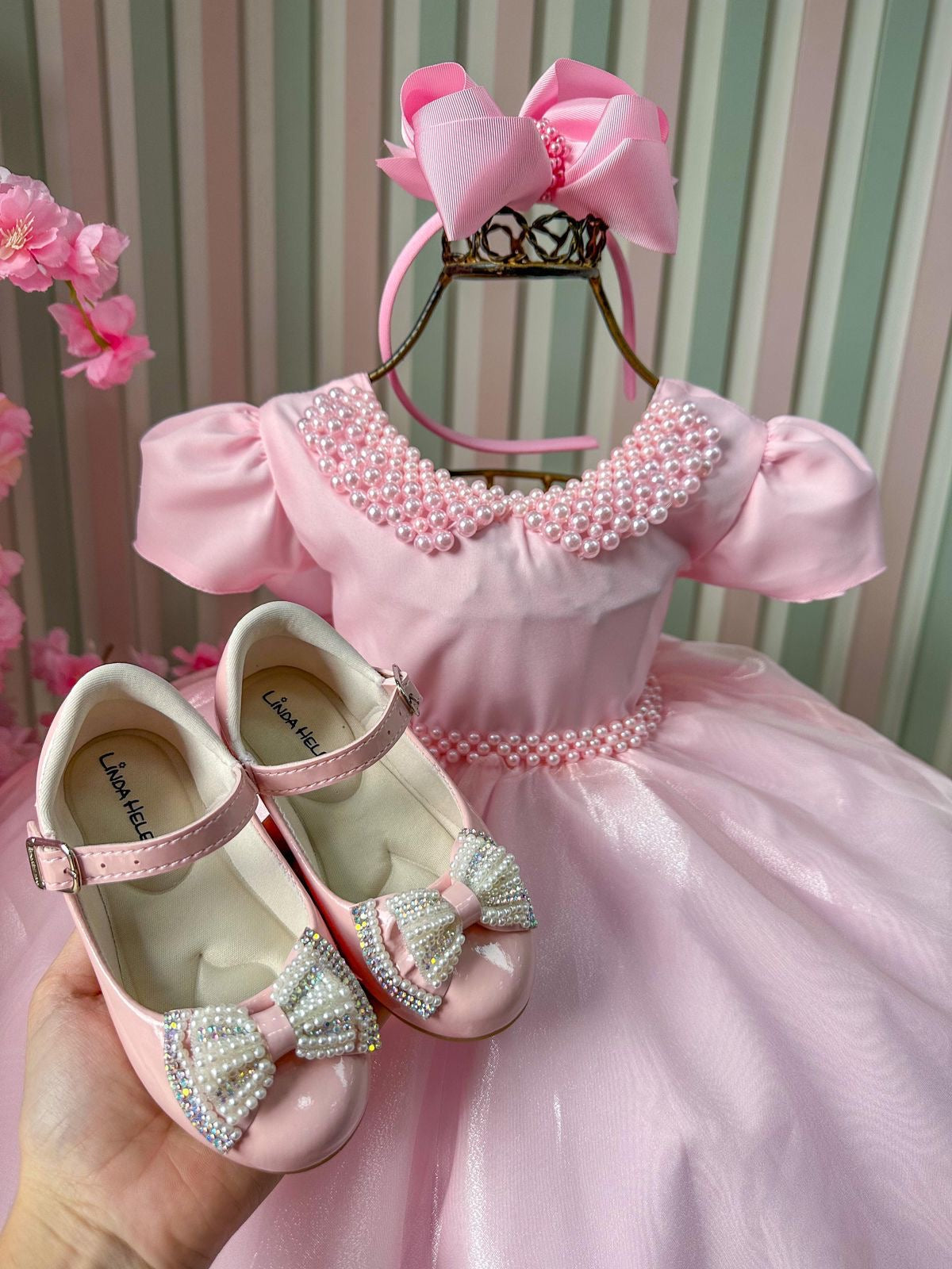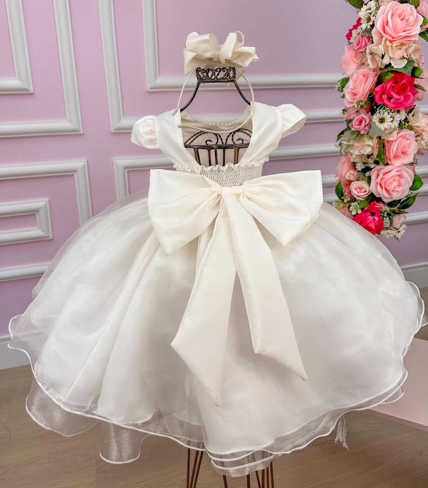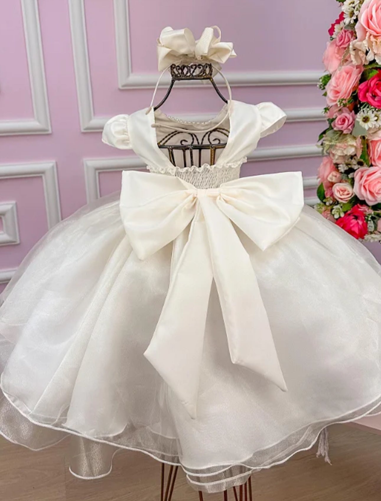 Este lindo Vestido Luxo é perfeito para ocasiões especiais. Feito com bordados manuais de pérolas e elegante laço na cintura, ele é a escolha perfeita para destacar beleza e sofisticação. Com detalhes de qualidade e um toque de luxo, sua criança vai arrasar em qualquer festa.