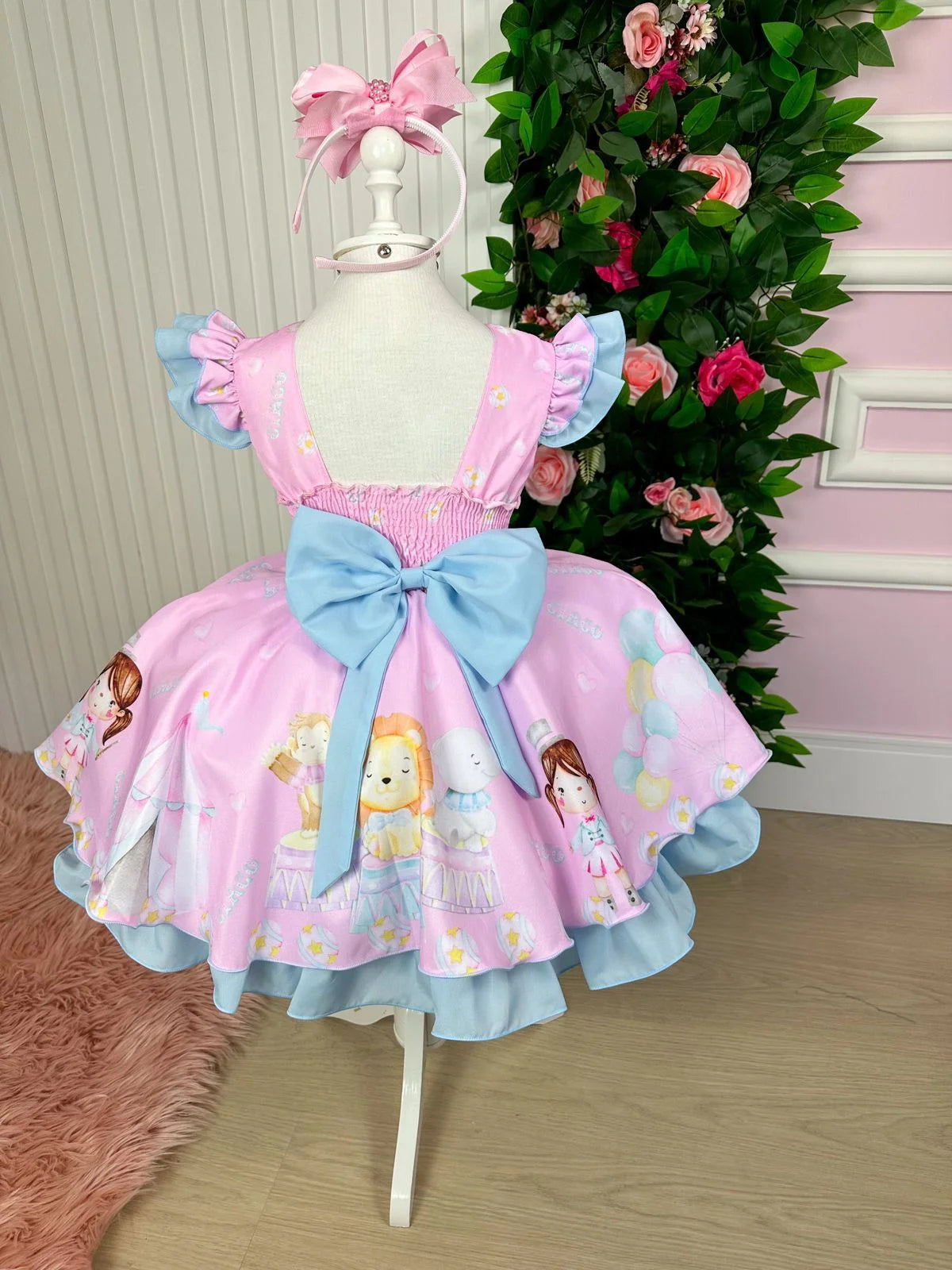 Transforme sua filha na estrela do espetáculo com nosso exclusivo **Vestido Temático Circo**! Perfeito para festas, eventos e ocasiões especiais, este vestido combina conforto e estilo, levando a magia do circo para o seu guarda-roupa.