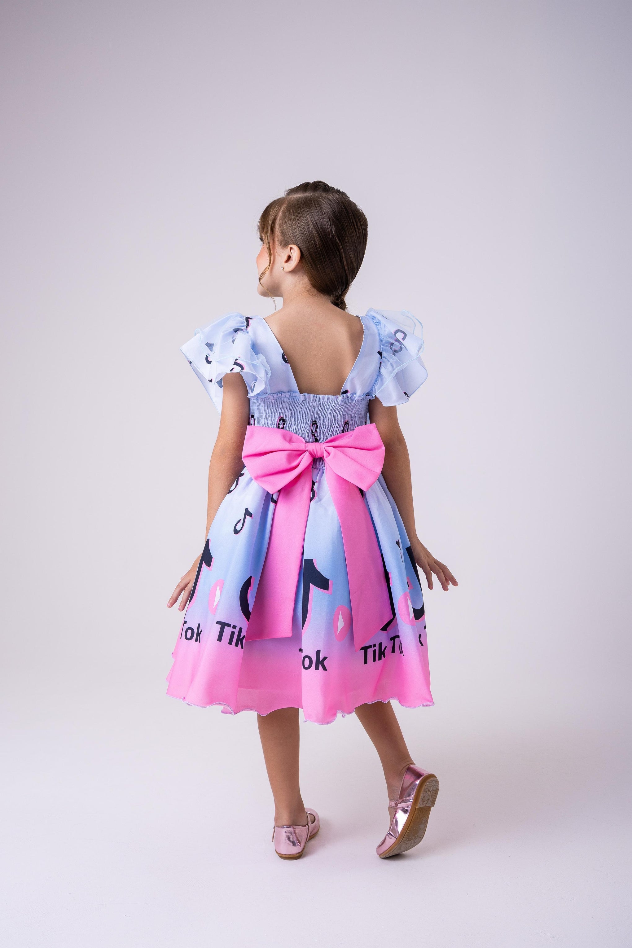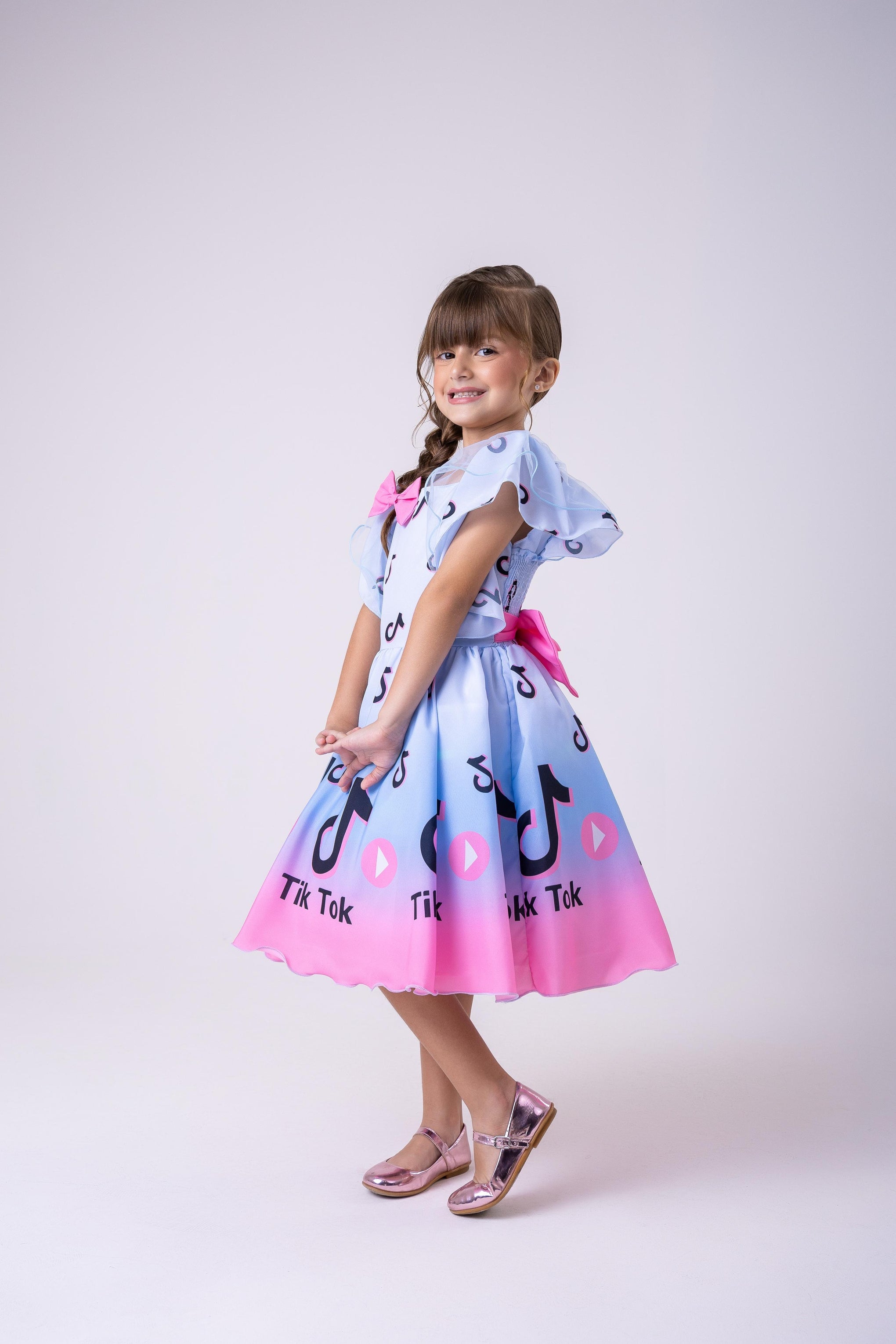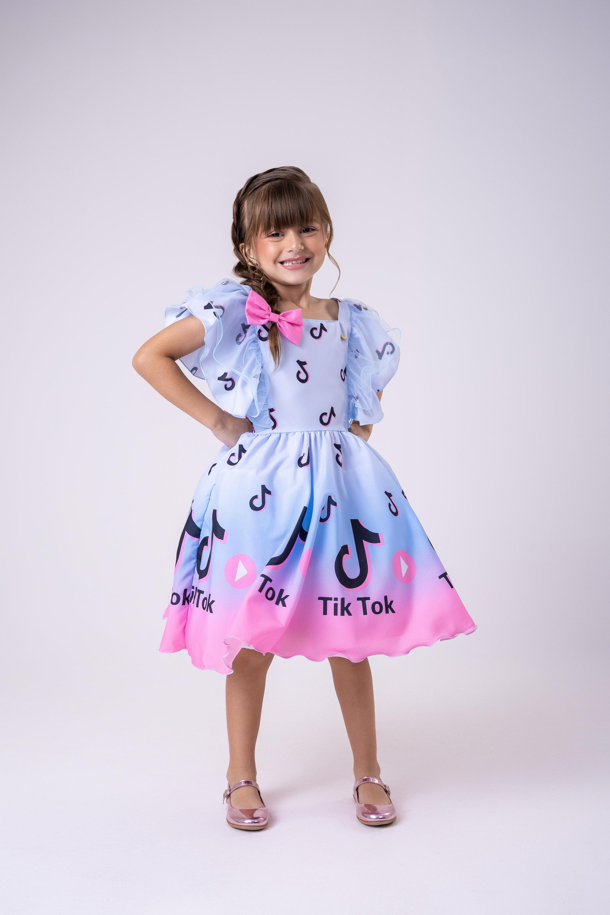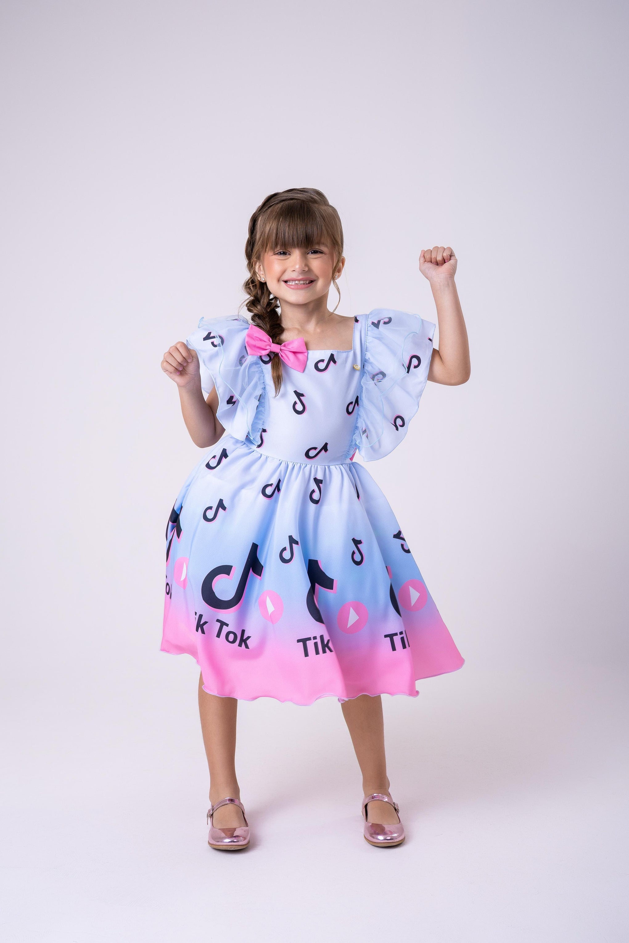 Vestido Temáticos Kids Tik Tok Azul Bebe