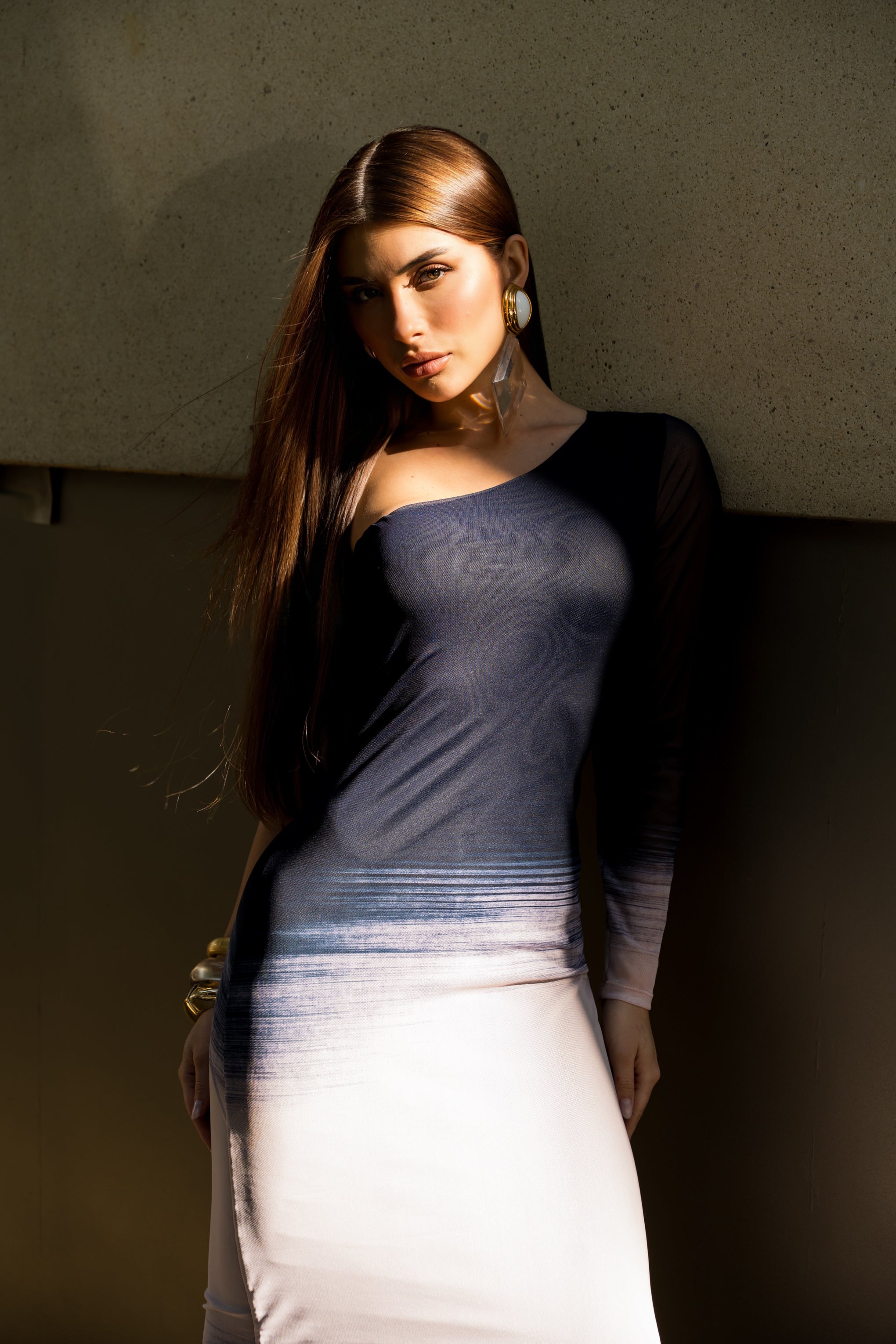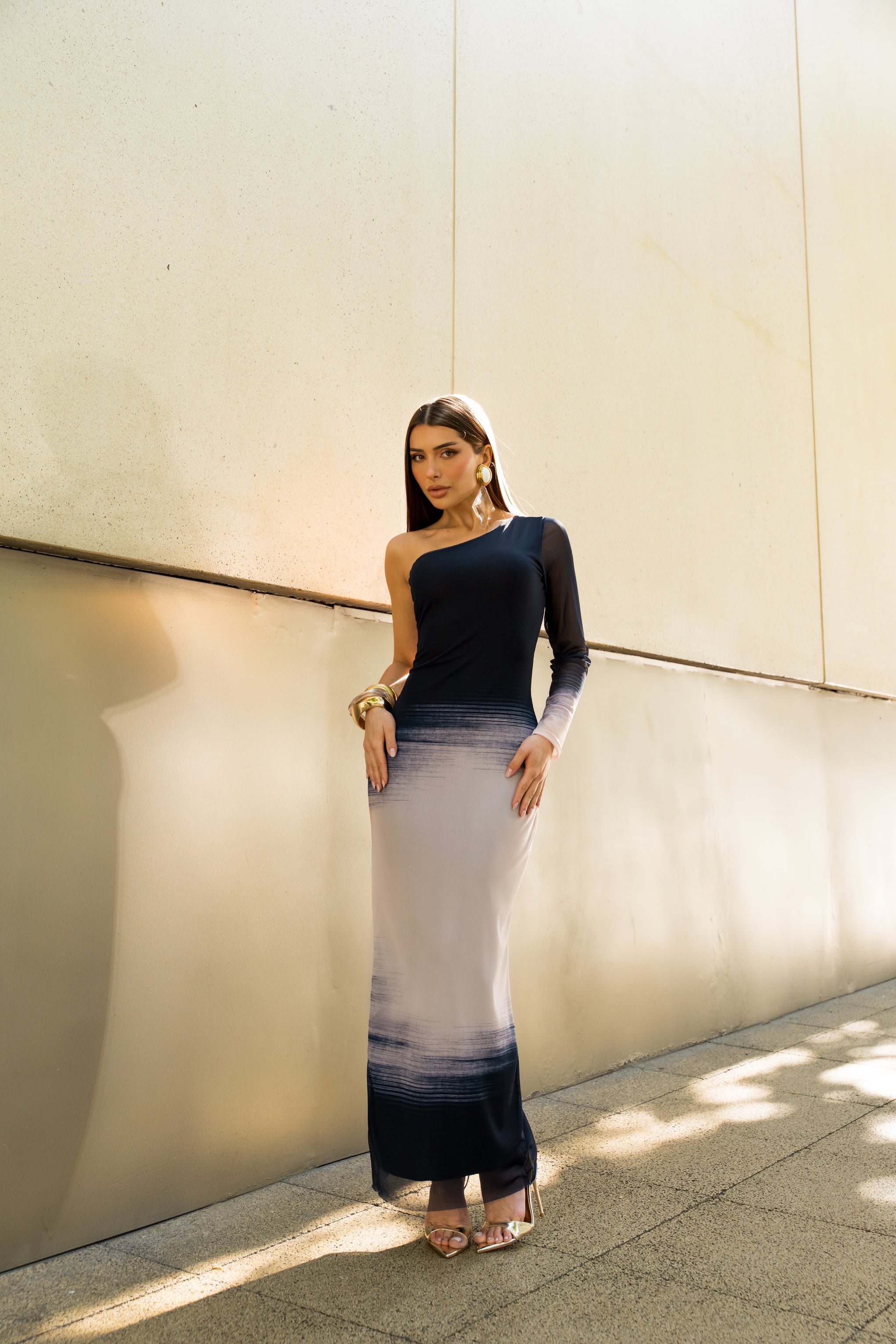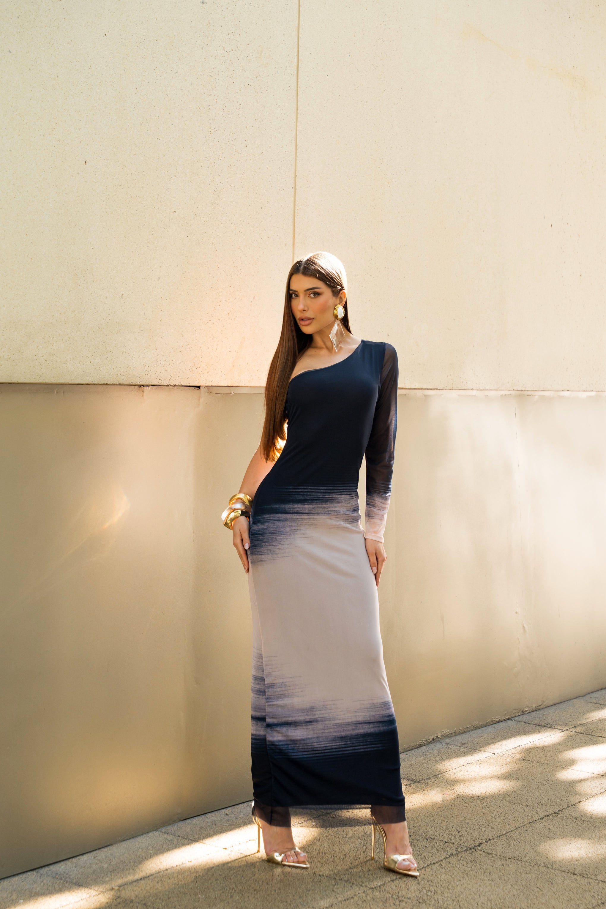 Vestido Super Midi Estampado Ombro Único