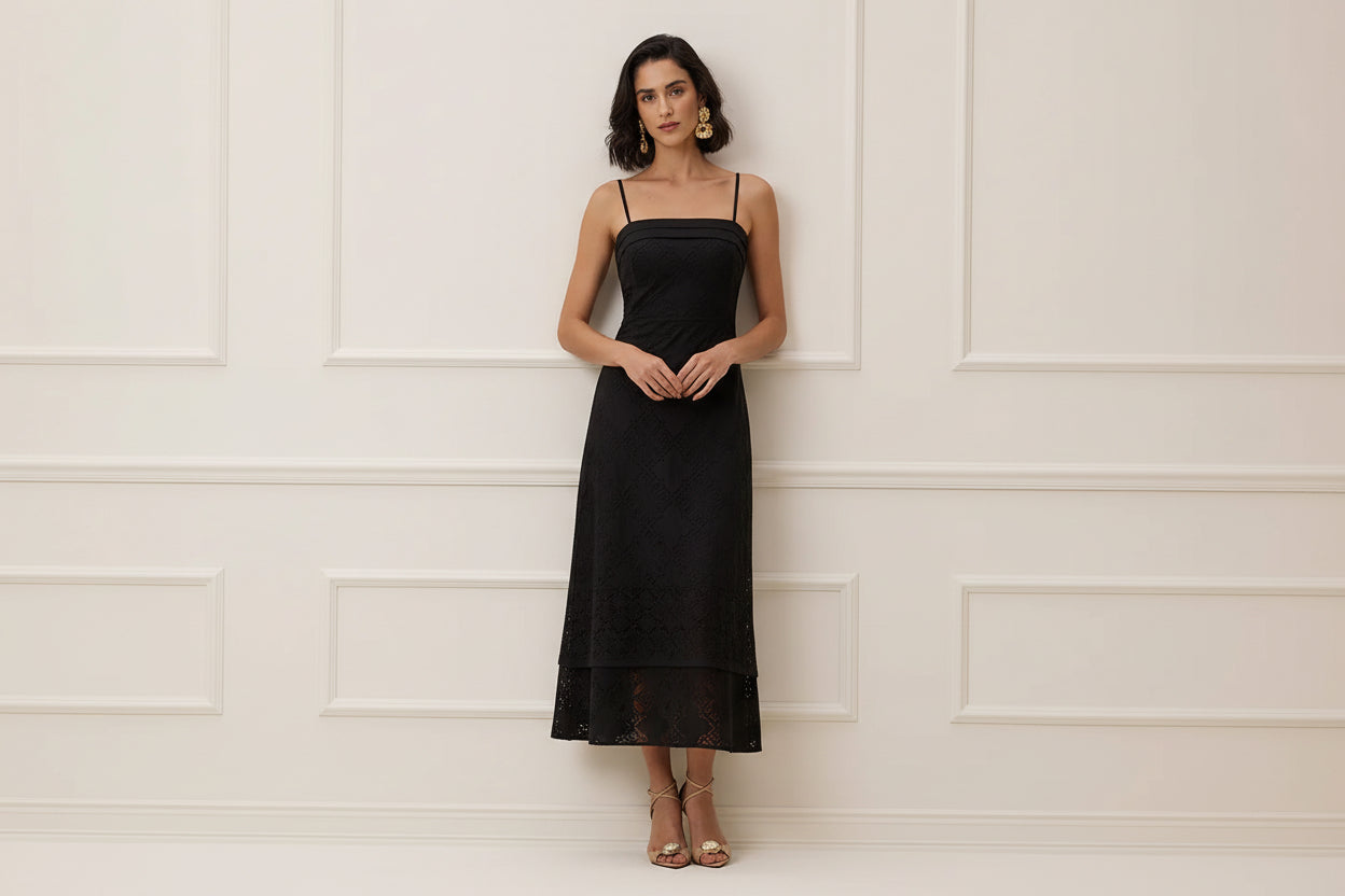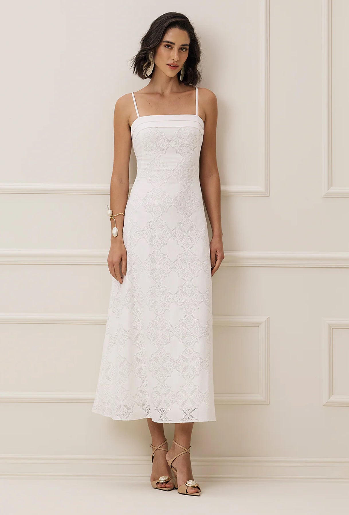 Vestido super midi liso com lapela: com forro em tecido leve e acabamento embutido no decote, o modelo conta com alças finas com reguladores de ajuste. o decote frente apresenta lapela dupla sobreposta em tomas, e recortes laterais estruturam o busto. o zíper no centro costas é seguido de recorte. a barra é finalizada em bainha, garantindo acabamento refinado.