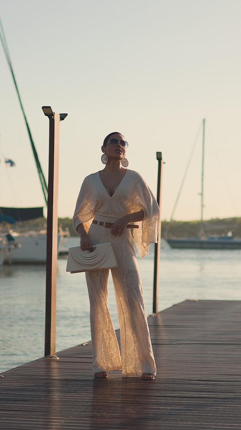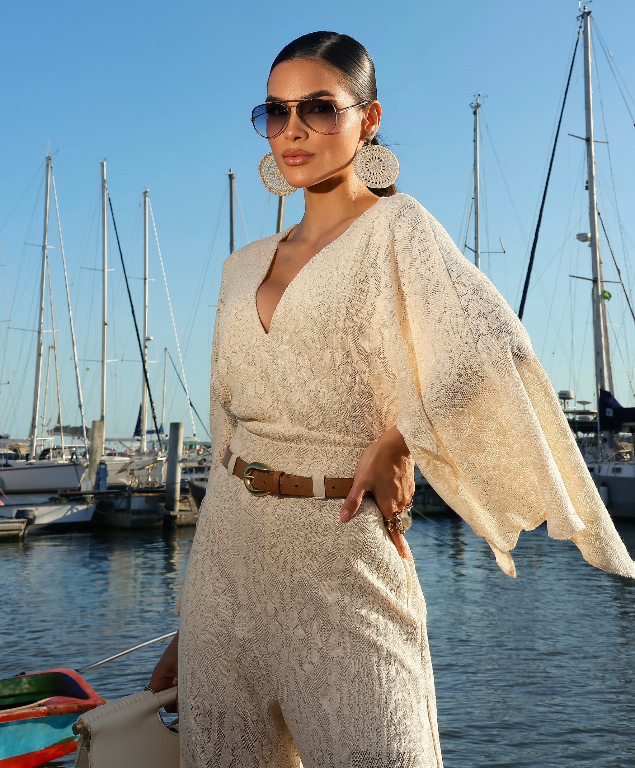 Calça wide lisa com mini passantes: calça ampla com design moderno e forro em tecido leve, oferecendo conforto. o cós duplo estruturado conta com passantes em tamanho restrito que adicionam um toque diferenciado à peça. a abertura lateral é finalizada com um zíper aplicado, garantindo praticidade e sofisticação. confeccionada em tecido vazado, combina leveza e estilo. o acabamento da barra em bainha proporciona um caimento impecável, tornando-a uma escolha ideal para looks refinados e contemporâneos.
