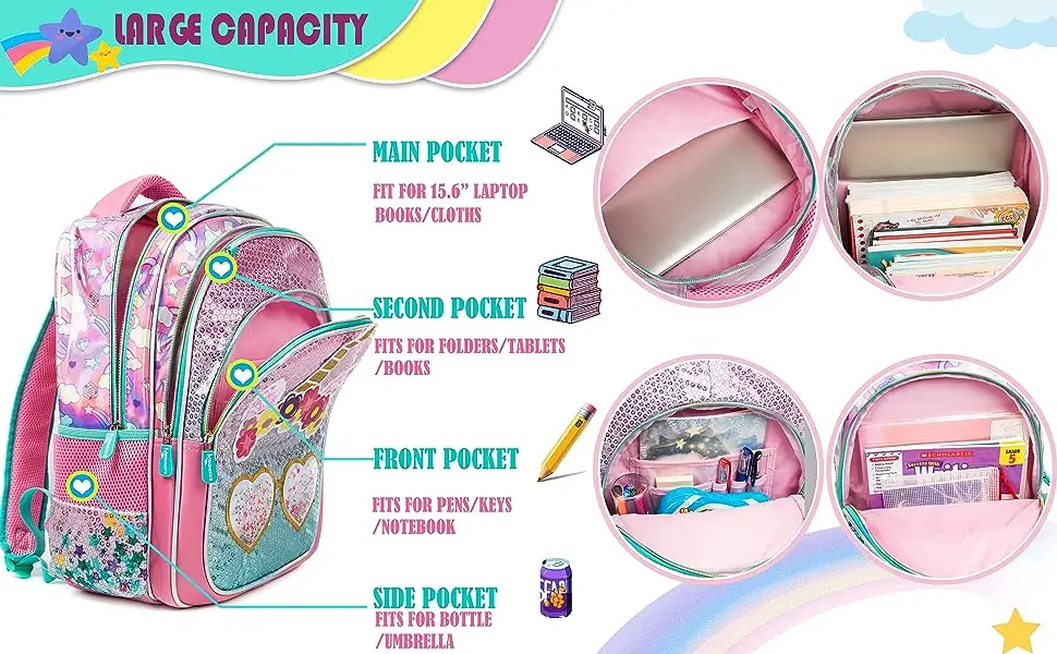 • 🧜‍♀️Recomendar idade: Para meninas entre 6-8 anos de idade. Esta linda mochila escolar é a escolha perfeita para seus filhos