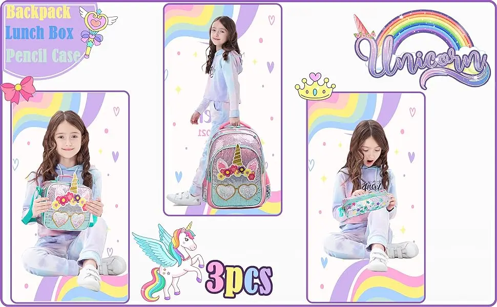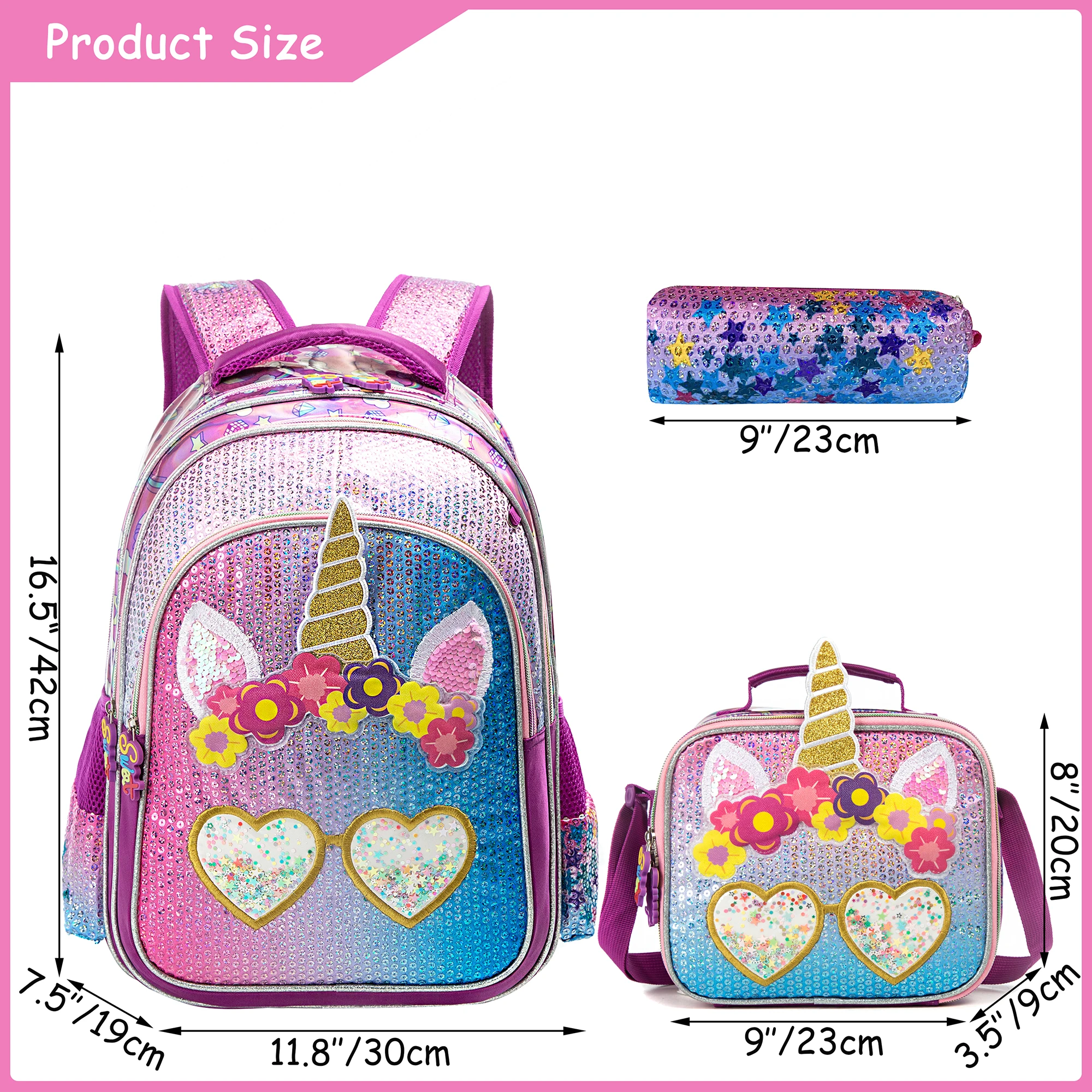 • 🧜‍♀️[Girls Backapck Size] Mochila: 16.5 "X11.8" X7.5 "Lunch Box:9" X8.2 "X4.3" Lápis Case:8.6"