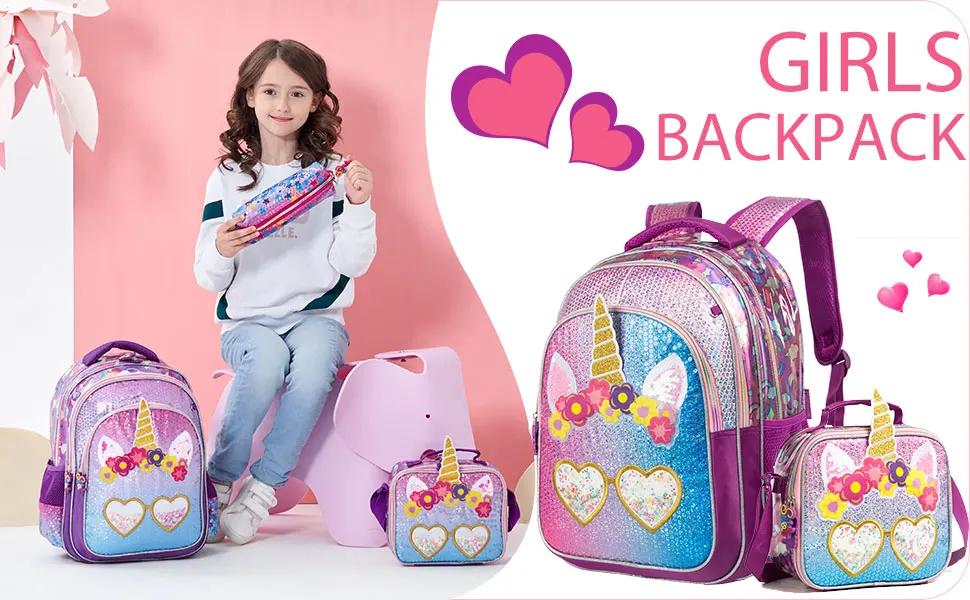 • 🧜‍♀️[Girls Backpack Quality] Design leve, Glitter Sequin material feito. Alças acolchoadas ajustáveis e painel traseiro oferecem suporte e conforto.